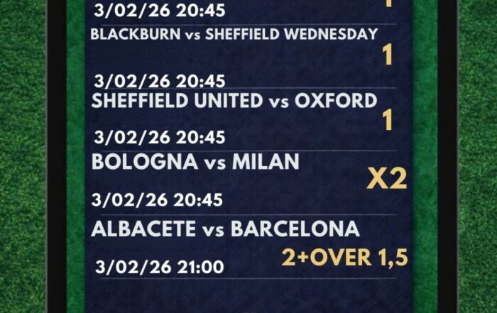 Multipla del Martedì Inizio 03/02/2026 ore 20:45 Ecco un'analisi sintetica dei tre match in programma per questa sera, Martedì [...]