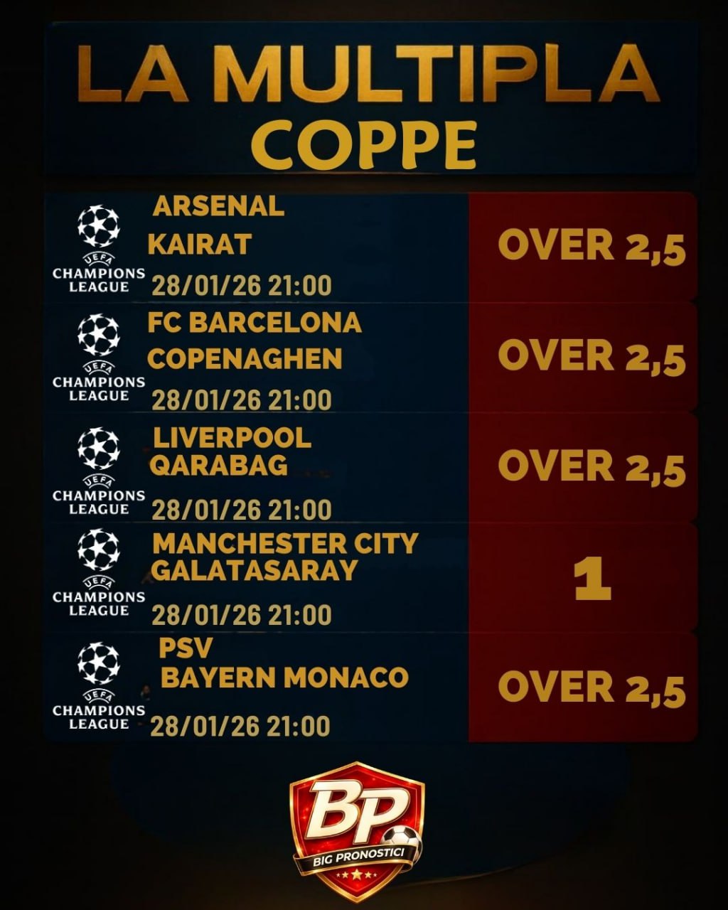 Raddoppio Champions League 28-01-26