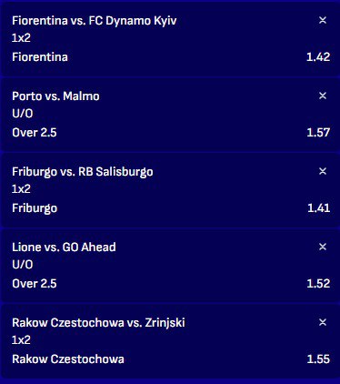 Multipla coppe europee prima fase giornata 6 Lo spettacolo รจ assicurato, grande attesa con incontri all’ultimo respiro. Noi di Big Pronostici offriamo una selezione gratuita di pronostici con una multipla europea con una quota di tutto rispetto.