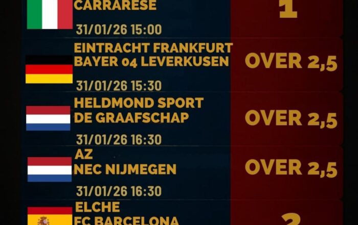 Multipla del Sabato 31/01/2026 inizio ore 15:00 Entra gratuitamente nel nostro canale Telegram [...]